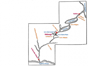 À la fin du 17ème siècle, les Français avaient déjà exploré le territoire du nord de l’Indiana et découvert le formidable atout du site de fort Wayne. Un simple portage de quelques kilomètres (hors saison sèche) permettait, depuis la rivière Sainte-Marie, de remettre les canots à l’eau dans la Petite rivière pour rejoindre la rivière Wabash, affluent de la rivière Ohio. Par la suite, les Français purent ainsi relier directement le Canada à la vallée du Mississippi sans pratiquement quitter les cours d’eau.